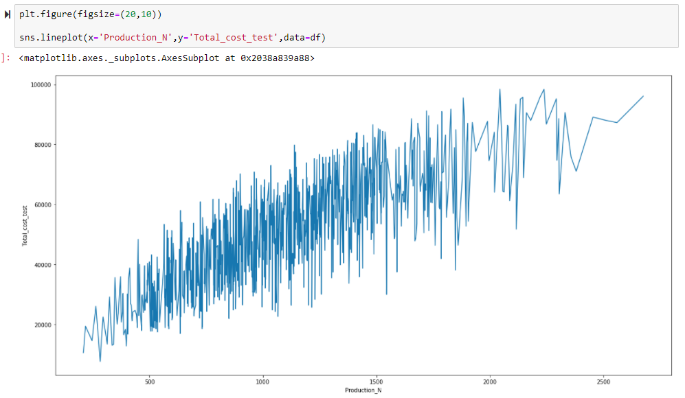 This scatterplot shows an analysis of the actual values. This chart again articulates that for a given production, there is a combination of manpower that creates a significantly lower total cost.
