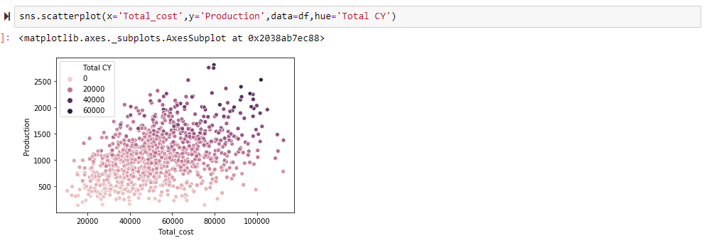 The proof of concept project began by using Pandas to import the excel dataset shown earlier. To see key relationships and acquire the best initial insights of the data, some data visualization techniques were first used.
