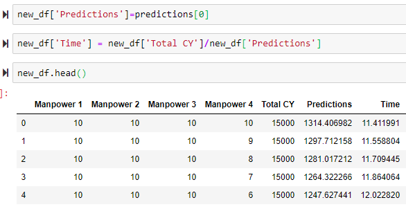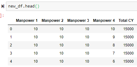 The data set created was then ran through the model that was previously created to predict production values for all of the various combinations of manpower.