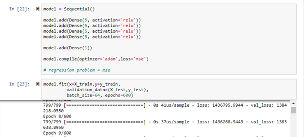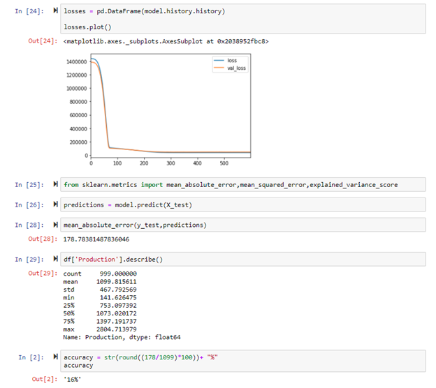 At the bottom of the previous image of code shows the model roughly had an accuracy of 16%. These results were not outstanding, but they could have been worse. Since this was a proof of concept, I am happy with the results of this project. Keep in mind that the data used in this model was completely randomized and that made extremely hard for the model to make exact predictions. In a real dataset, I believe the model would definitely pick up on reoccurring trends that would make the results much more accurate.